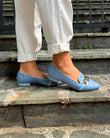 Con nuestras Baletas con hebilla Azul hechas de cuero suave y con un diseño elegante, estas baletas son perfectas para complementar cualquier atuendo. Con su hebilla delicadamente colocada, estas baletas le brindarán un toque de sofisticación a su look diario. Disfrute de la comodidad y la elegancia al mismo tiempo.