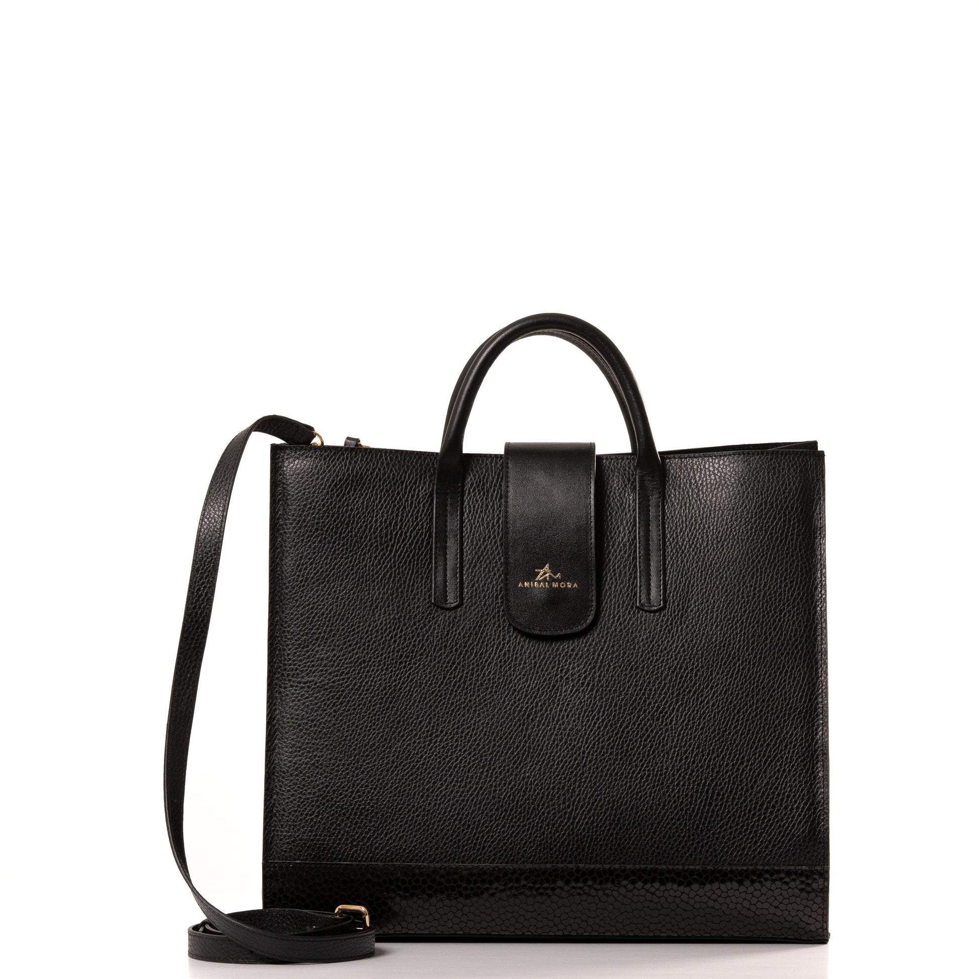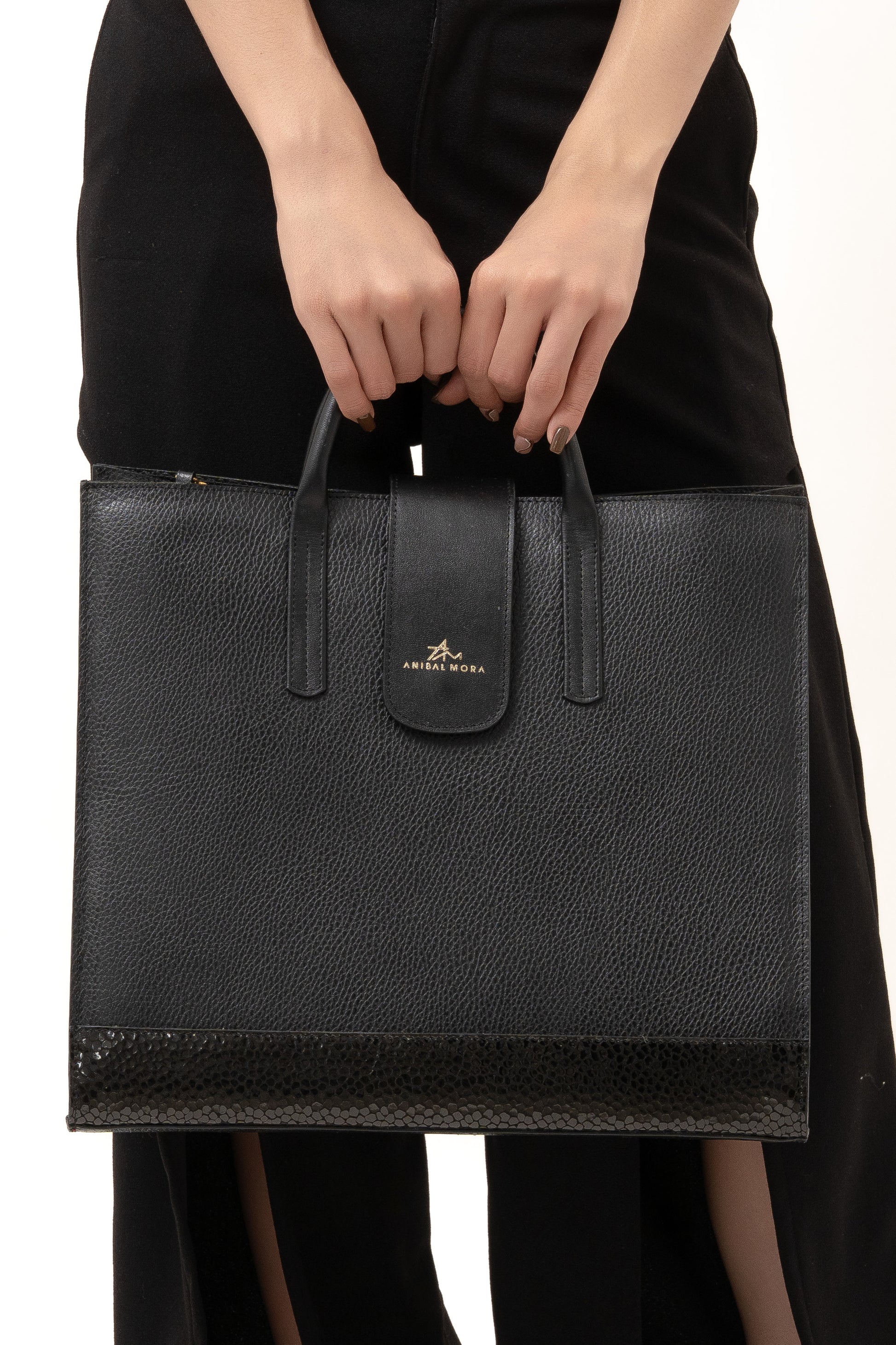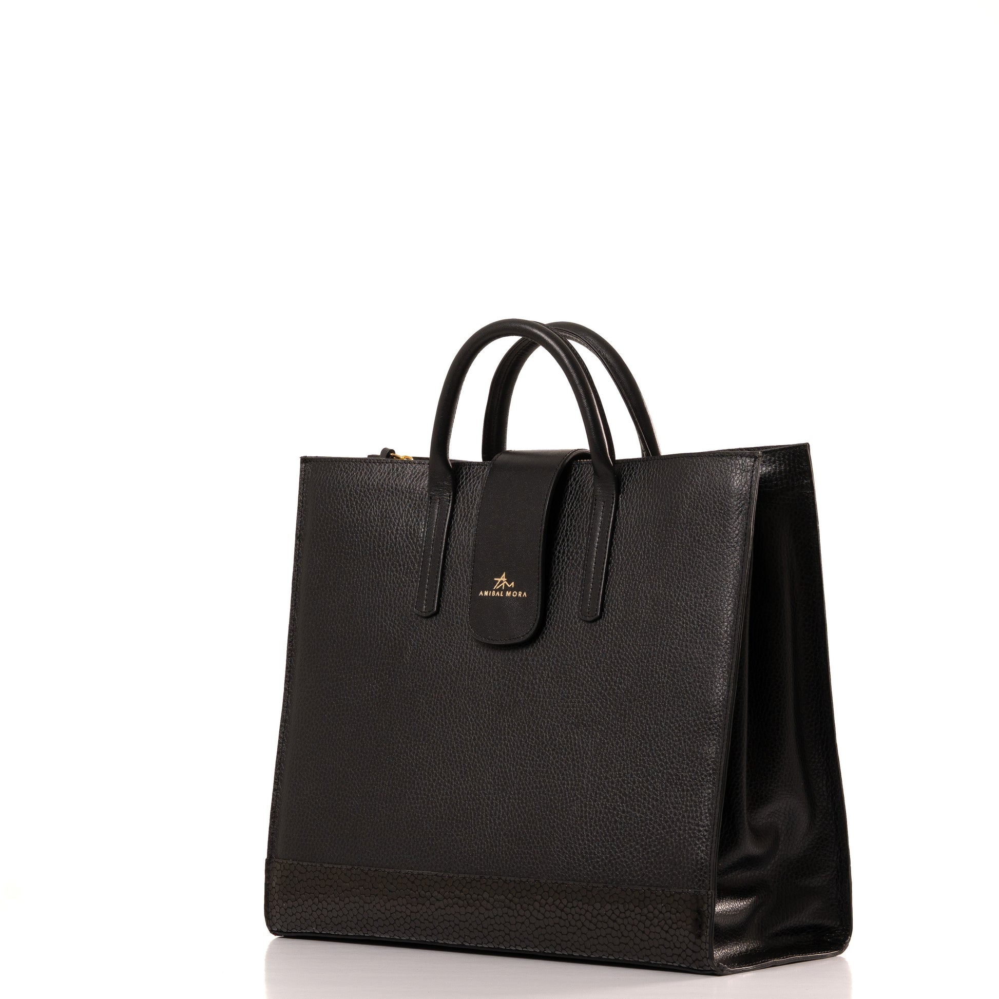 Pensada para quienes llevan su mundo consigo, esta pieza incluye una chapeta con la marca repujada de forma sutil, que permite cerrar levemente el bolso con elegancia. En su interior, forrado con material antifluido de alta calidad, encontrarás divisiones y un bolsillo funcional que facilitan el transporte organizado de herramientas tecnológicas como el MacBook, iPad y otros accesorios esenciales.