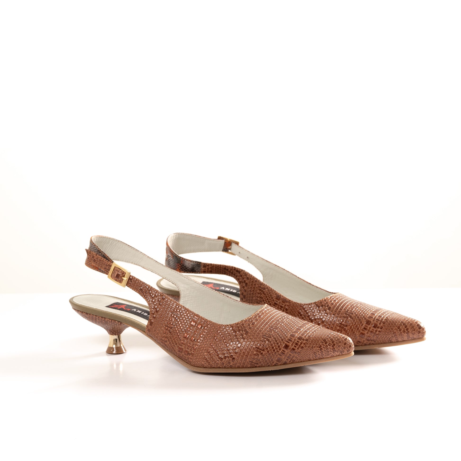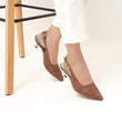 Su estructura estilizada y el tacón dorado de diseño curvo ofrecen una elevación discreta, suficiente para transformar una caminata cotidiana en una afirmación silenciosa de estilo.
