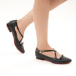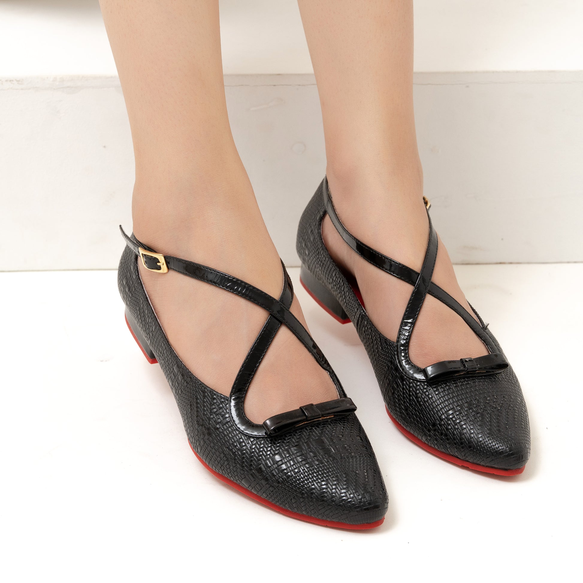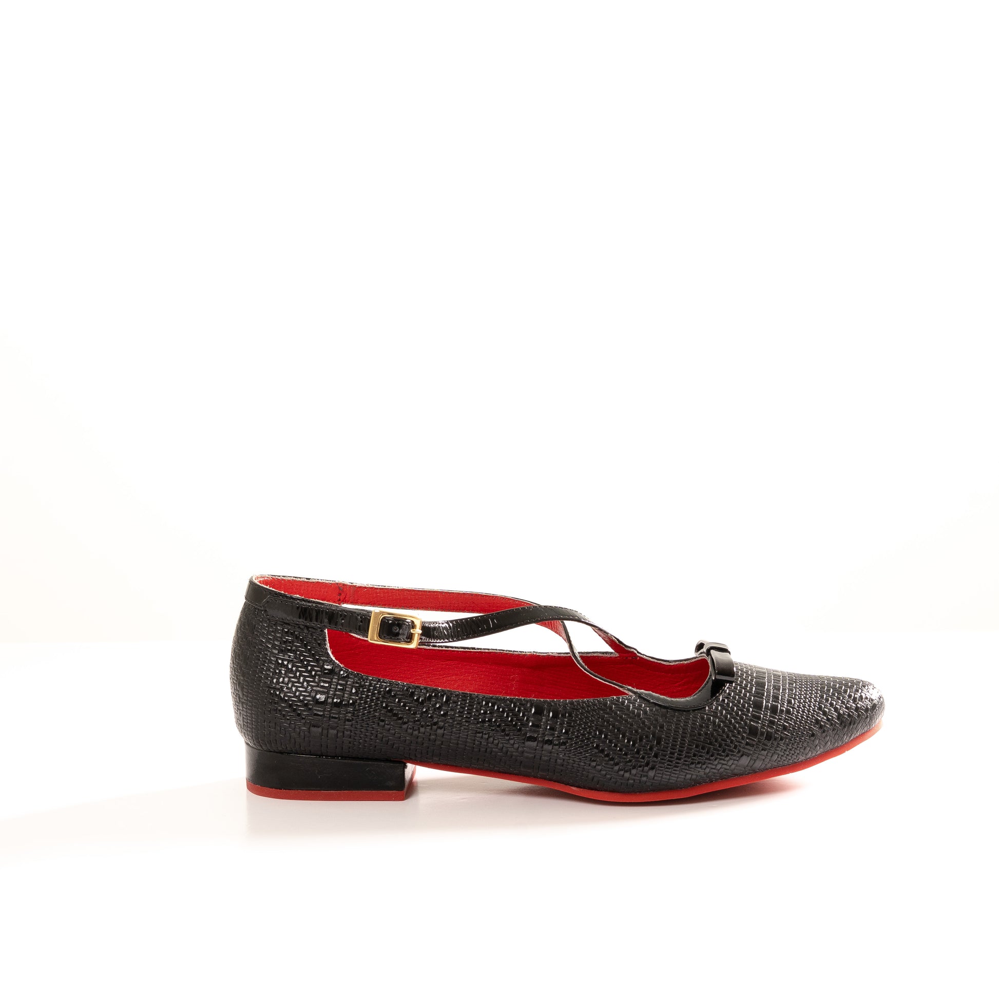 "Serenidad" es un diseño que emana la esencia de la Colección Alma Silenciosa. Este calzado de "Suave Elevación" combina la elegancia atemporal del cuero negro con toques sofisticados de cuero charol negro. Su capellada de cuero texturizado ofrece un estilo distintivo, mientras que el forro interior de cuero rojo y la suela de caucho puro, también en rojo vibrante y adornada con el monograma AM, proporcionan un contraste llamativo y un confort excepcional. Con un tacón discreto de 2.5 cm, "Serenidad" es la elección perfecta para quienes buscan distinción y comodidad en cada paso.
