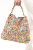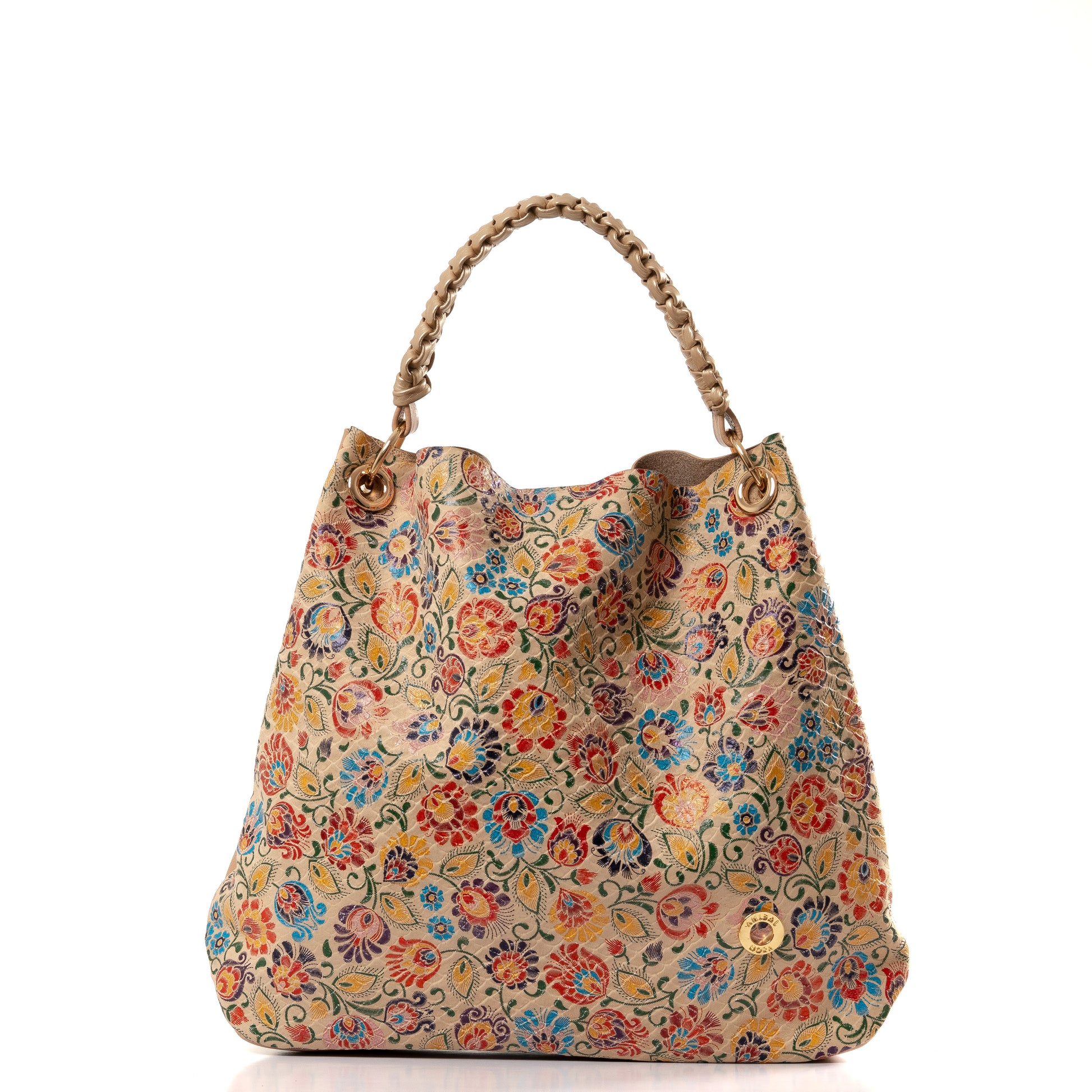 Imagínate llevando "Suave Aurora" en color Camel, una pieza que te conecta instantáneamente con la elegancia discreta y el lujo personal. Al tacto, sentirás la suavidad de su cuero de alta calidad y la sutil textura repujada, una caricia para tus manos. Su vibrante aplique floral multicolor, aplicado con precisión foil, no solo atraerá miradas, sino que refleja tu personalidad única y luminosa.