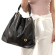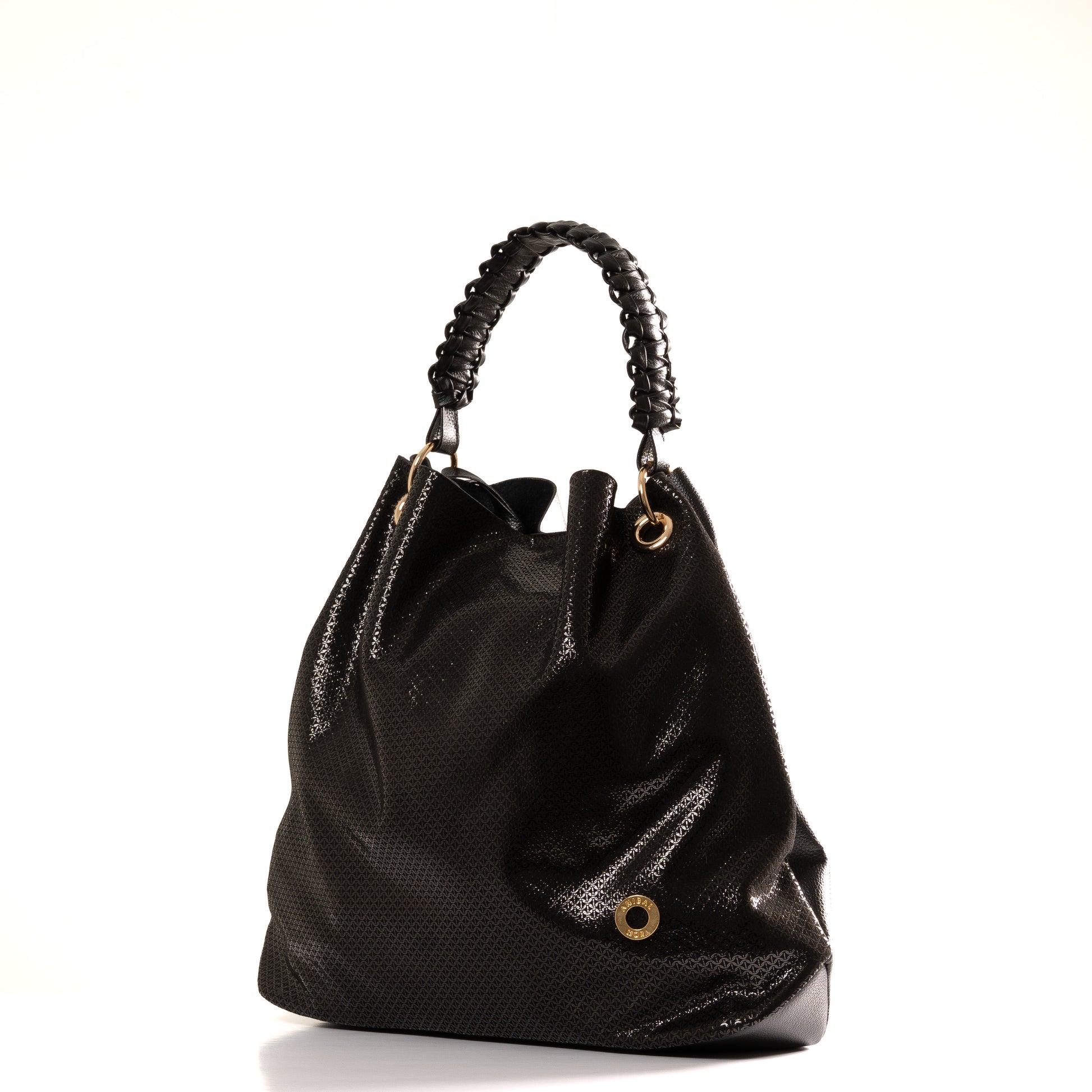Su amplitud y diseño inteligente (34x42x10 cm) te brindan la libertad de organizar tu vida con facilidad, adaptándote perfectamente a tu ritmo, sea cual sea la ocasión. El asa, tejida a mano en cuero liso negro, no es solo un detalle de diseño, sino que te proporciona una comodidad excepcional y un toque de artesanía que eleva tu experiencia de uso. Los herrajes dorados añaden un destello de luz, creando un contraste perfecto que te hará sentir en la cima del lujo que no necesita llamar la atención, sino que se percibe en cada detalle y en la forma en que te hace sentir.