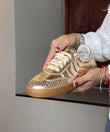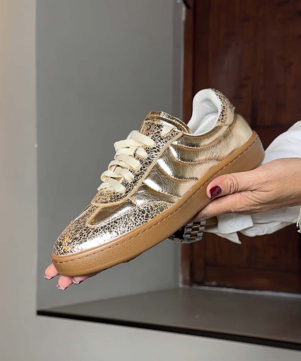 Experimenta el lujo y la elegancia con nuestros Tenis Aura Dorada. Confeccionados en cuero de alta calidad, su estilo dorado te hará destacar en cualquier ocasión. Además de ser versátiles y cómodos, son una obra de arte creada por el renombrado diseñador Anibal Mora. Eleva tu estilo con estos exclusivos tenis.